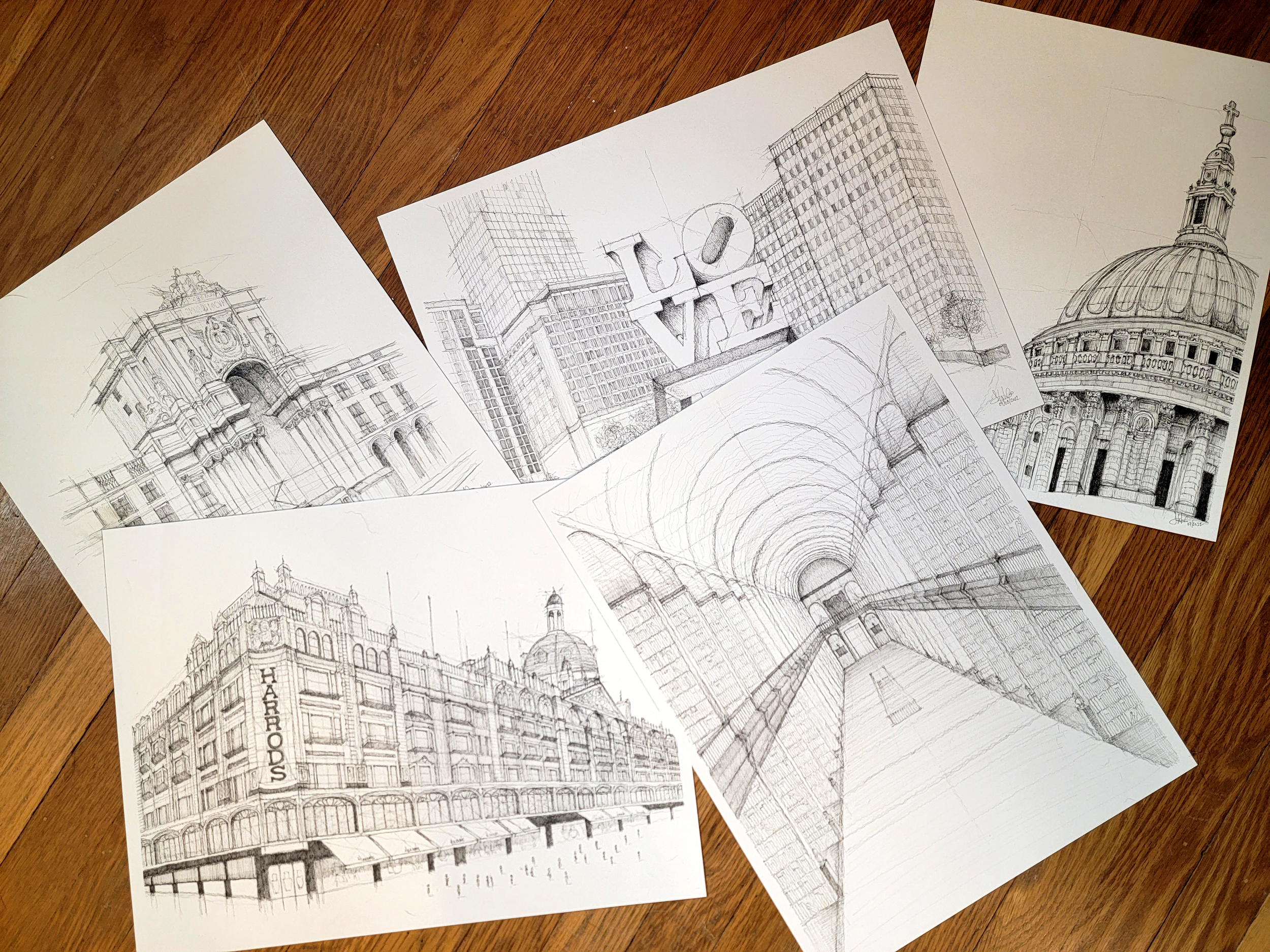 Get in touch for info about commissions — architectural drawings and leather goods made to order.