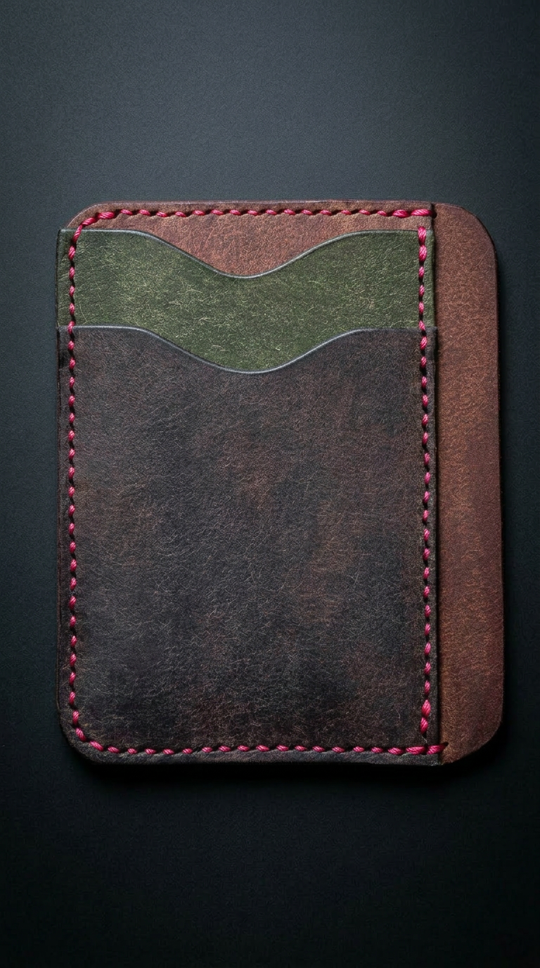The Portrait carries cards in a vertical format that sits clean in any pocket. Three card slots on the front face, a center middle pocket, and a full pocket on the back. Five pockets total in a profile slim enough to disappear in a front pocket.